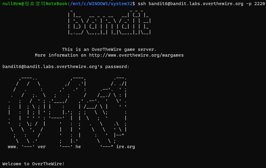 bandit7이라는 유저의 소유, bandit6 그룹에 속해있고, 33 byte라고 한다.